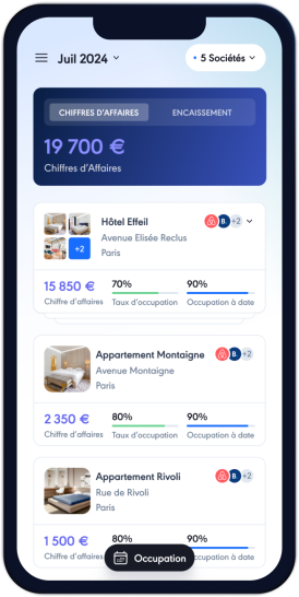 Réservations, revenus, paiements, factures, disponibilités de vos propriétés, historique, performances.
